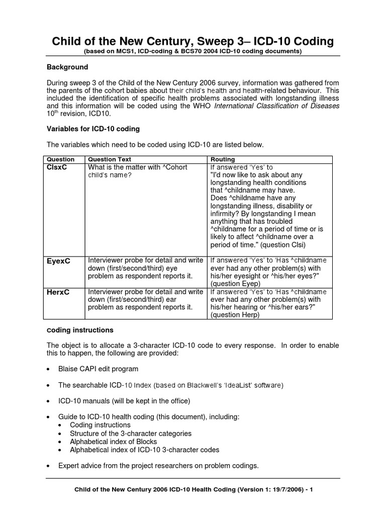 Icd10 Coding Instructions Congenital Disorder International Statistical Classification Of Diseases And Related Health Problems